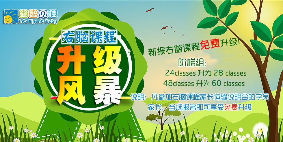 新報右腦課程免費升級說明凡參加右腦課程家長體驗說明會[說明會時間詳情見5大校區(qū)]的學員家長,當場為寶寶報名課程即可享受免費升級
