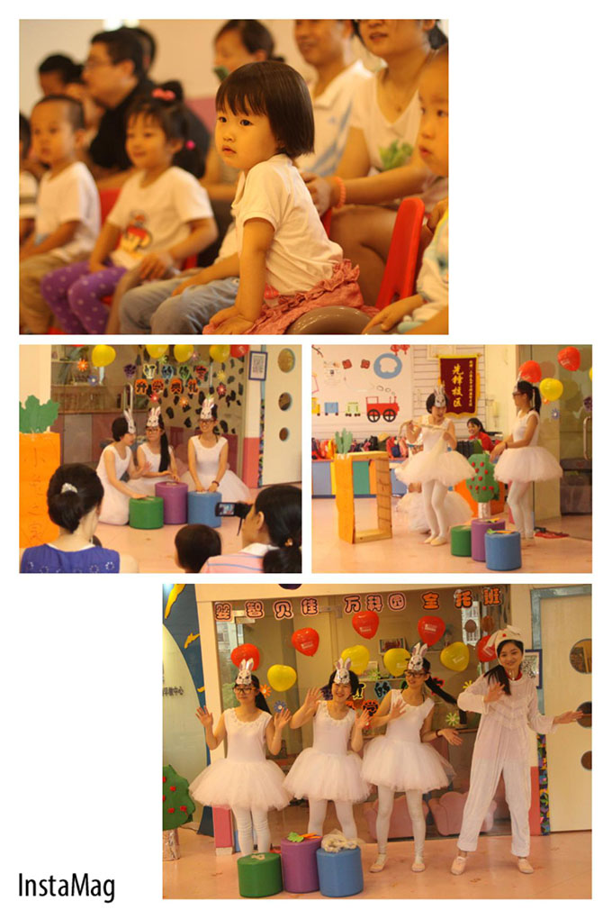 演出接近尾聲時(shí),老師為我們帶來(lái)了精彩的舞臺(tái)劇《小兔請(qǐng)客》,活靈活現(xiàn)的表演贏得了家長(zhǎng)們的熱烈喝彩。