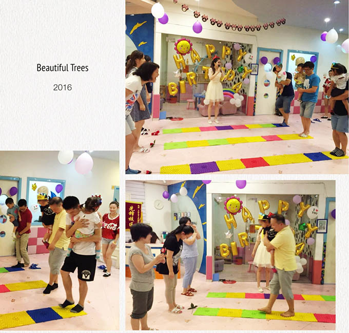 注意注意!到了最精彩的競(jìng)技游戲環(huán)節(jié)了,第一個(gè)游戲是“甜蜜的吻”,看到爸爸們痛苦的表情就知道指壓板來(lái)了,脫掉襪子走在對(duì)面的指壓板上讓寶寶撿起花送給媽媽,再送上甜蜜的吻,爸爸感受到我們濃濃的愛意了嗎?