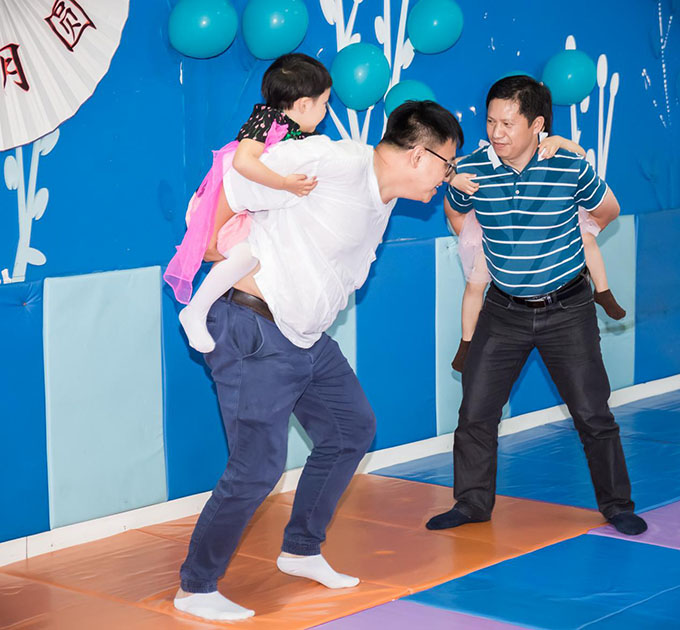 接下來是家長和寶寶的游戲<<揪尾巴>> 現(xiàn)場氣氛很活躍。